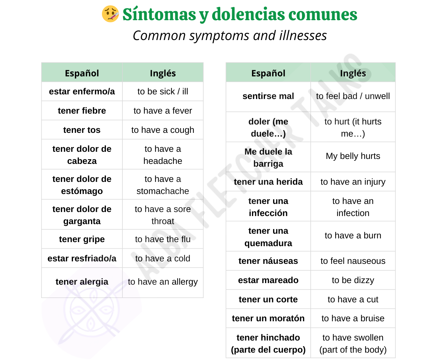 Symptoms and to be sick vocabulary in Spanish