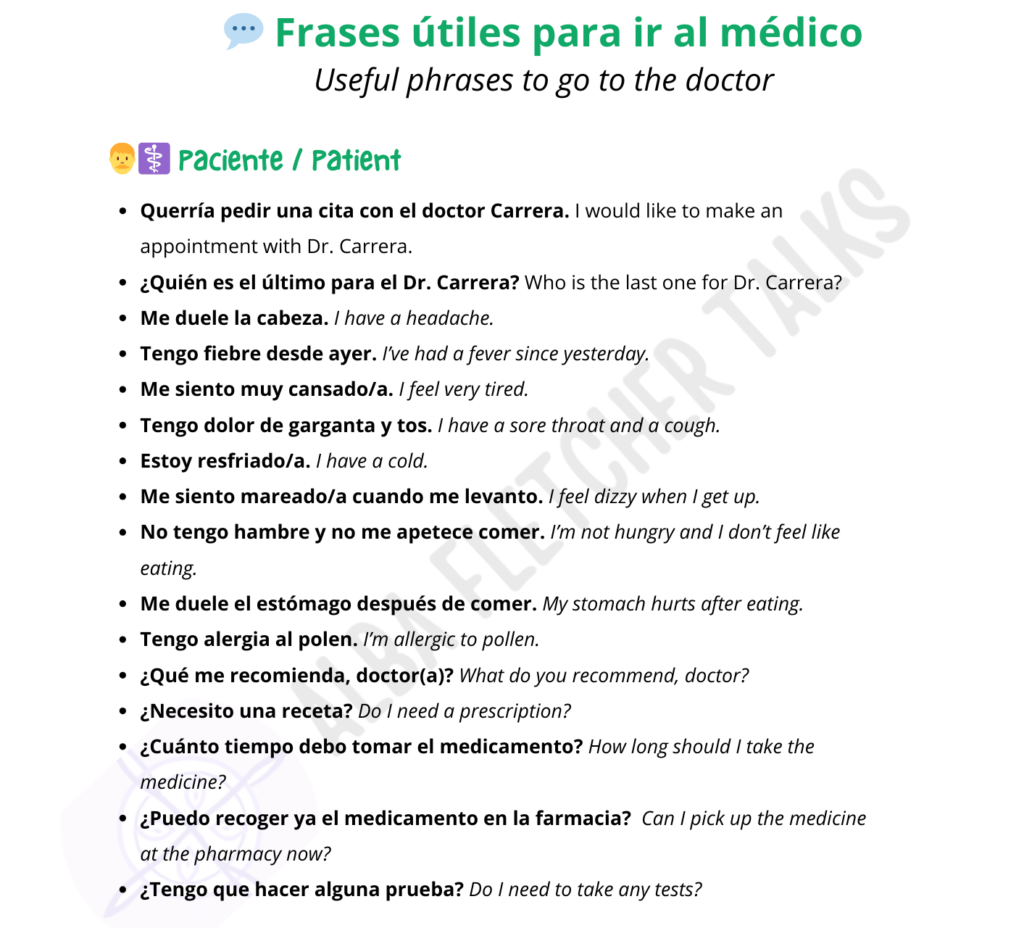 🩺 Frases útiles en el Médico