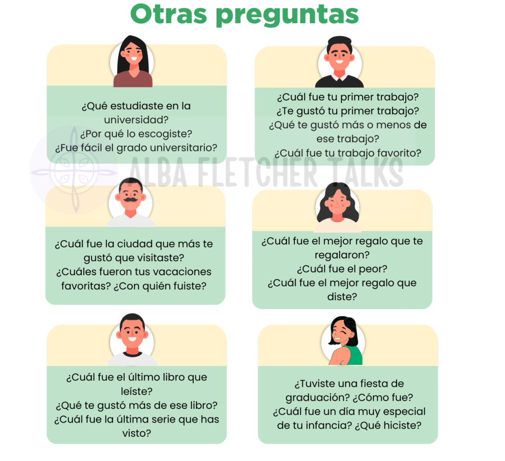 Ahora crea tus propias preguntas con estos verbos preguntando a gente, y contestando después en primera persona y demás personas.