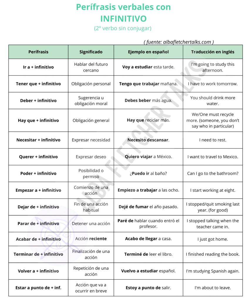 Learn how to use the «perífrasis verbales» in Spanish with a clear explanation, examples, and practice exercises.