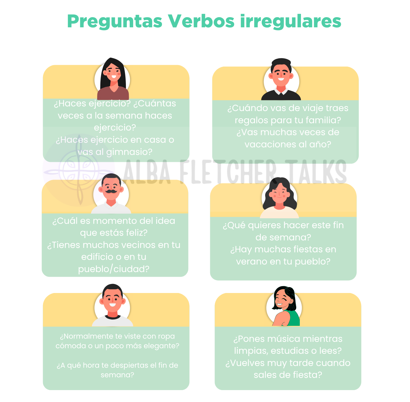 Learning Spanish irregular verbs can feel overwhelming — but it doesn’t have to be. In this video, you’ll discover the most common regular and irregular verbs in the present tense with real-life examples, and on this page, you can practice with extra sentences and questions to test yourself.