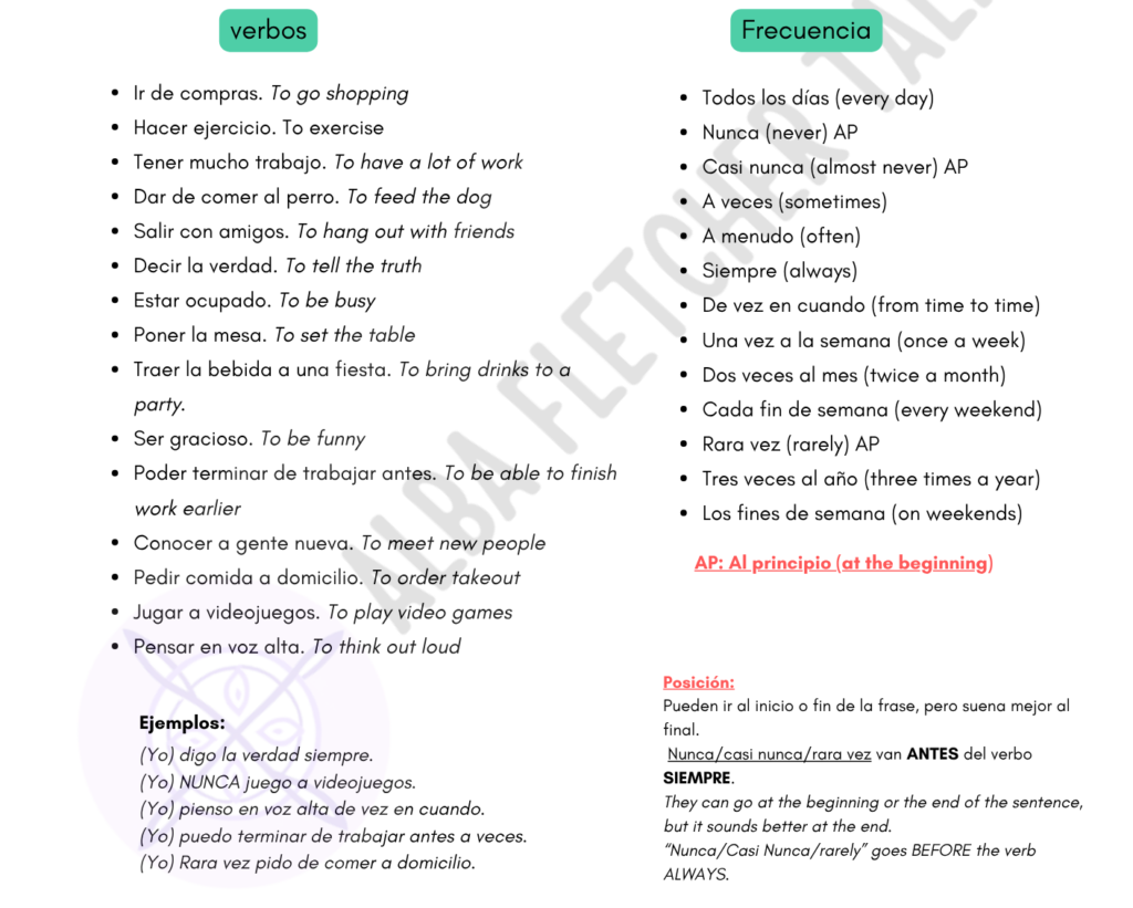 ¿Tú siempre vas al mercado local? ¿Cuántas veces das de comer a tu perro? ¿Cón qué frecuencia pides comida a domicilio? ¿Con qué frecuencia tu hermano juega a videojuegos?