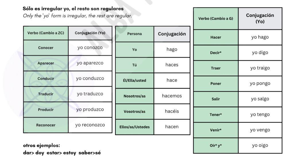 Verbos SÓLO YO es irregular