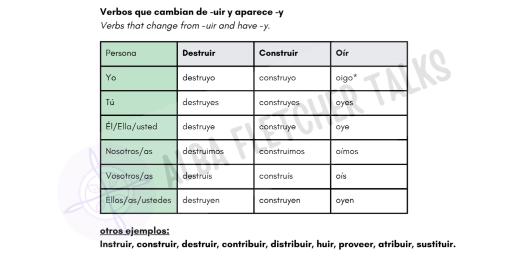 Verbos que cambia a -Y