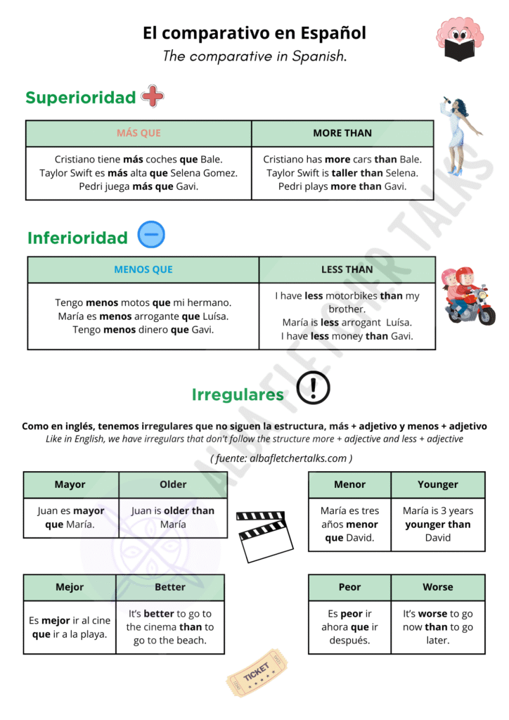 Spanish comparatives, superior and inferiority