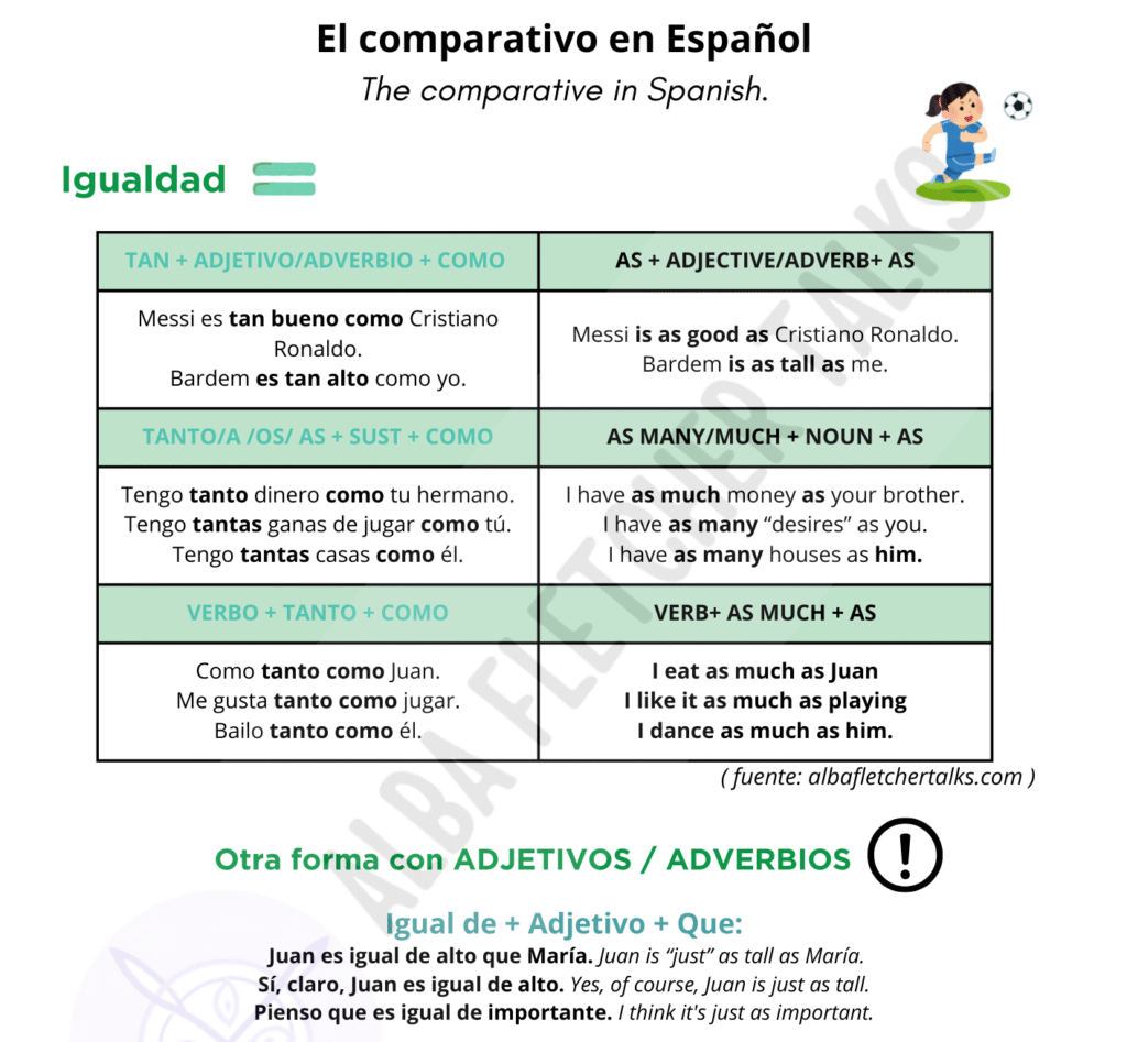 Comparativo igualdad en español