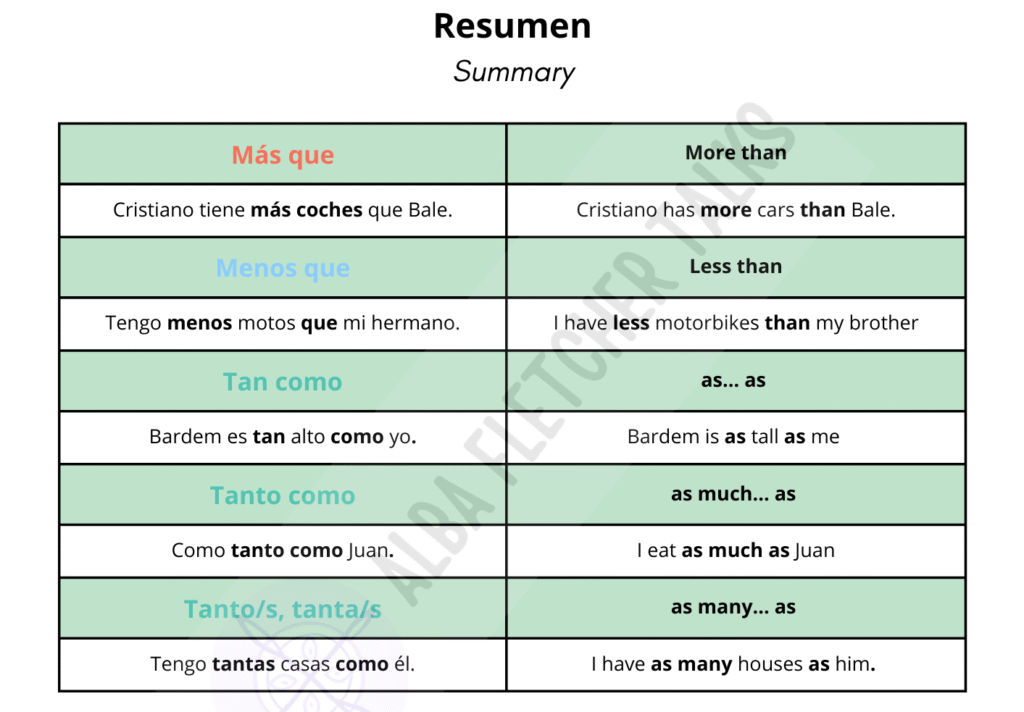 Clear explanation, examples, and exercises to master «más que», «tan como», and more.