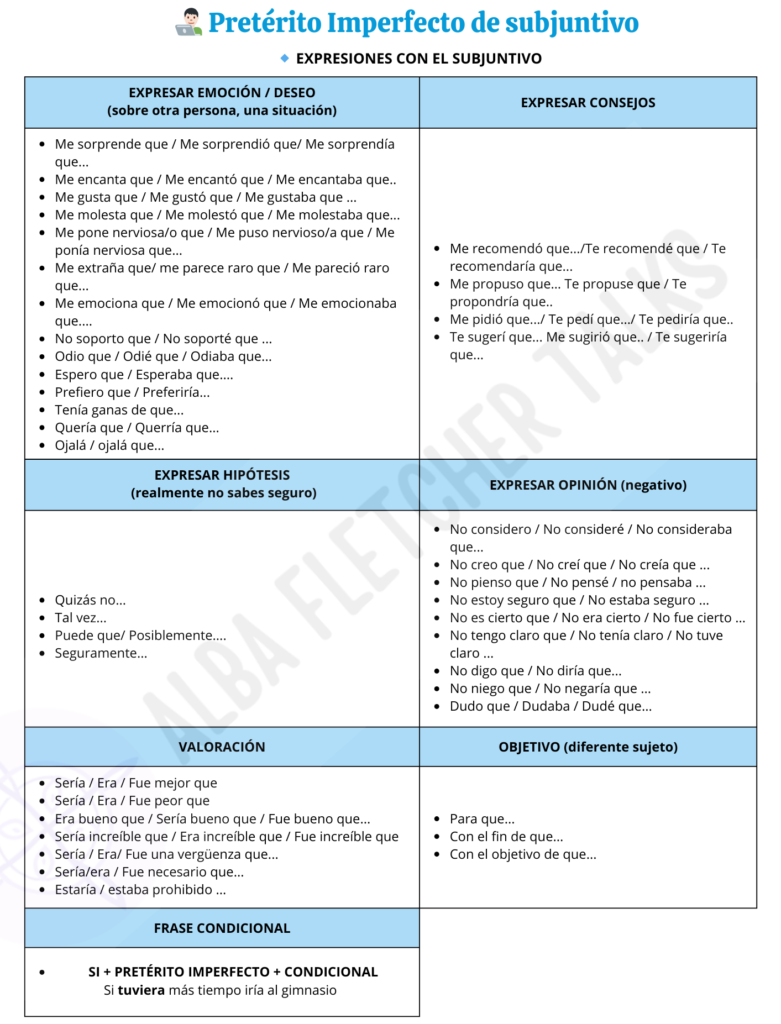 👉 El pretérito imperfecto de subjuntivo es un tiempo verbal que usamos en situaciones hipotéticas, deseos, dudas, cortesía o en oraciones subordinadas en pasado.