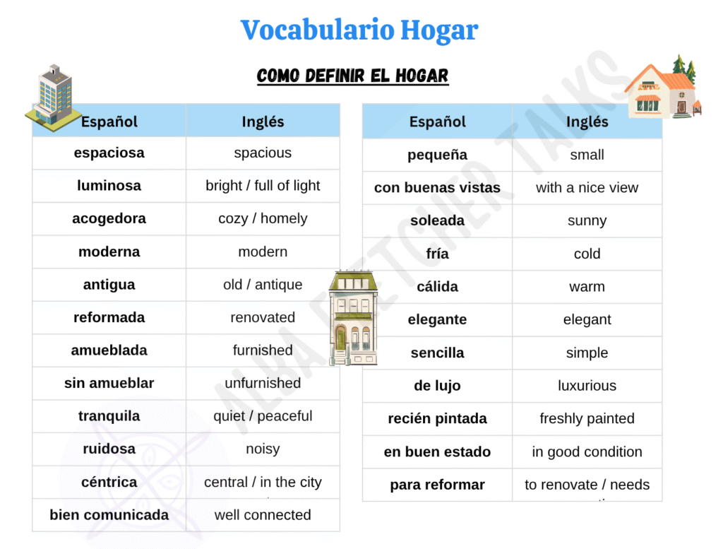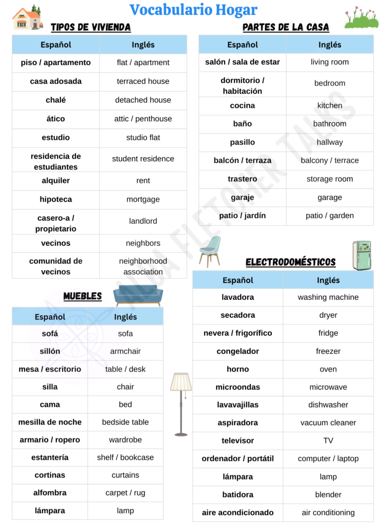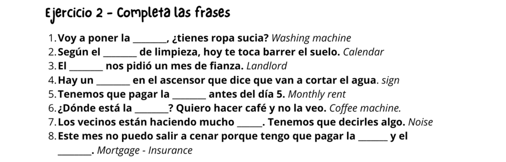 This is B1–B2 level Spanish vocabulary about daily life and the home.