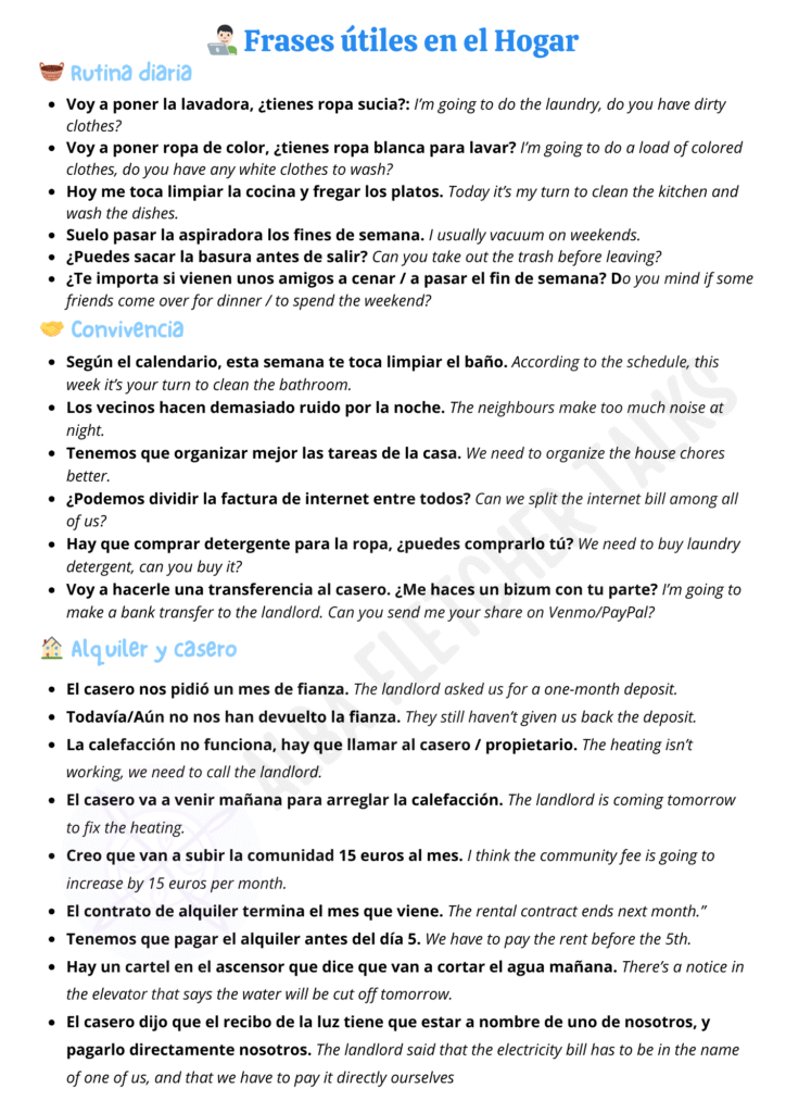 It includes useful words and phrases for chores, renting, roommates, and common problems at home.